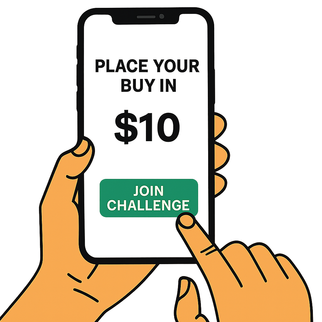 Join or create a 1v1 or tournament. If creating, set the time frame and buy in for the challenge.